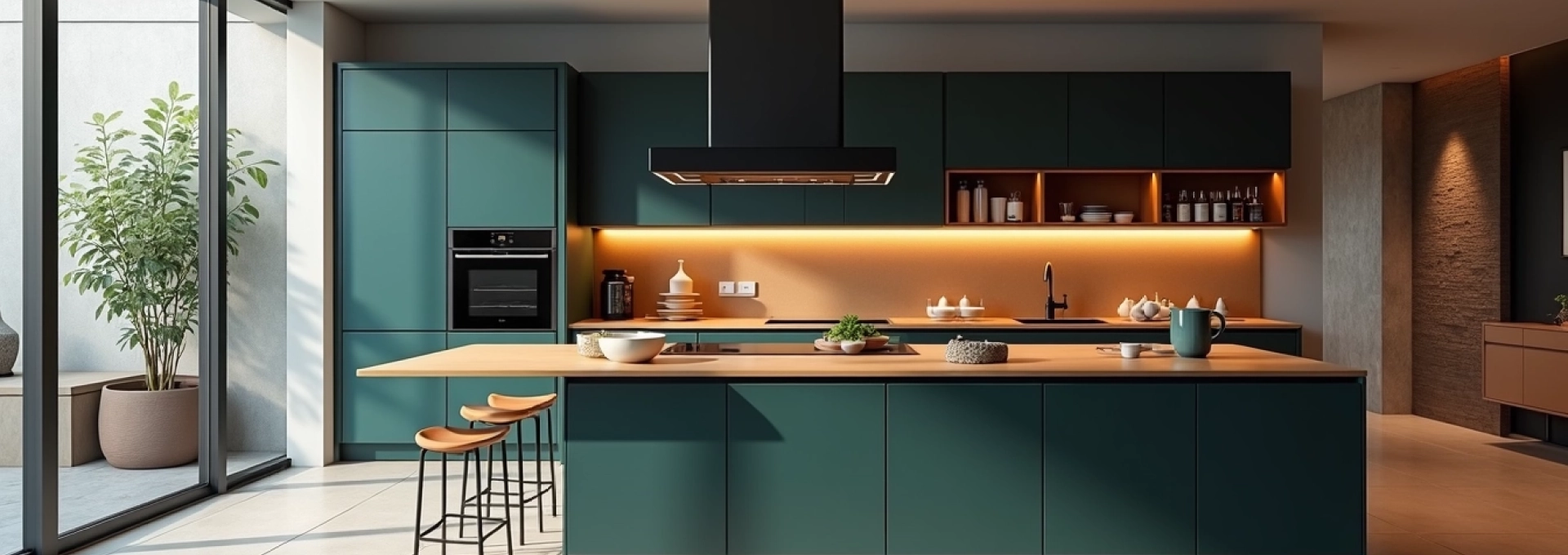 El resurgimiento del estilo art déco se está manifestando en cocinas con paletas de color audaces y lujosas. Los azules profundos, como el azul cobalto o el azul medianoche, se están combinando con acentos dorados para crear espacios sofisticados y dramáticos.